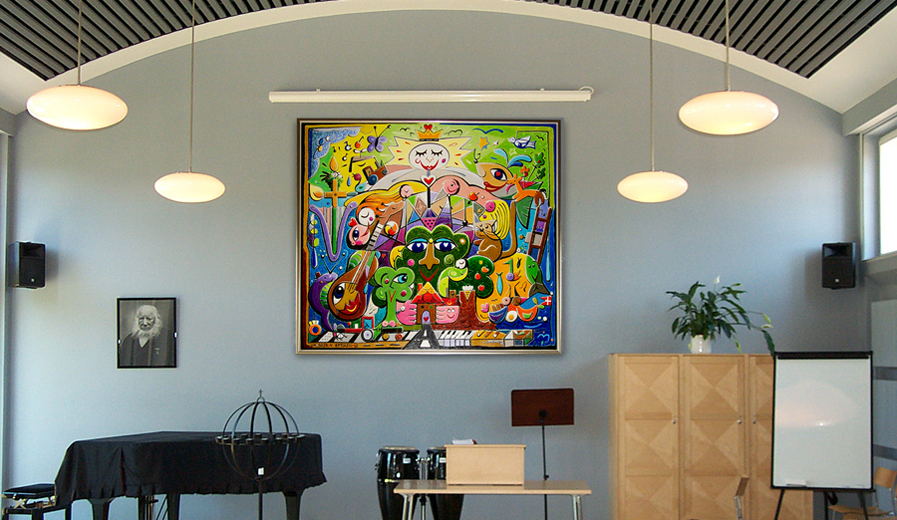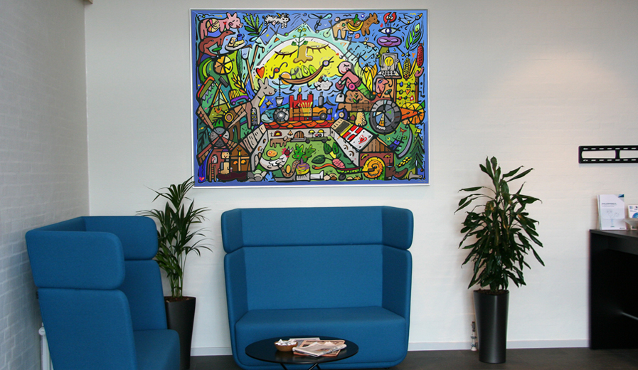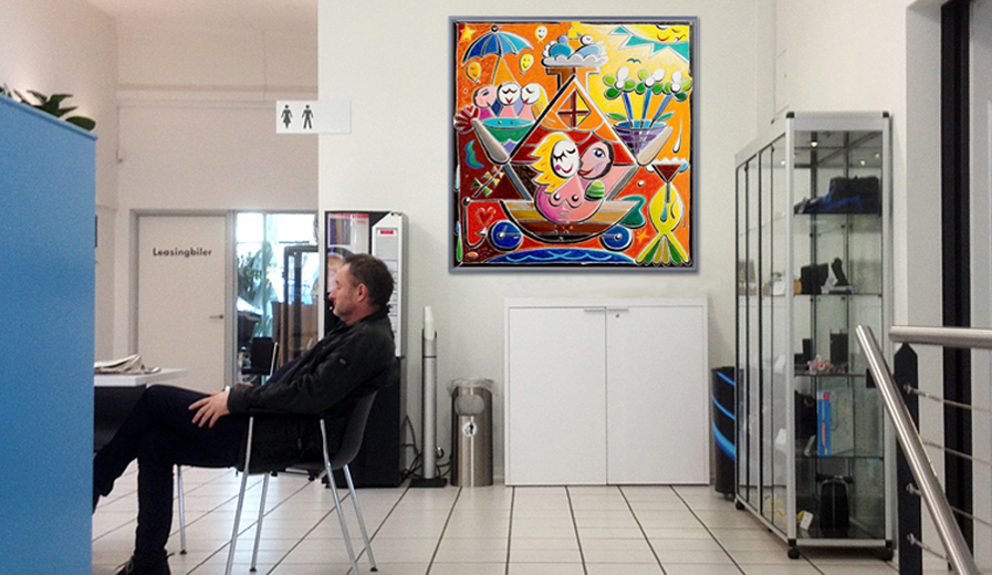 Udvalg af udsmykninger UdsmykningerGod & levende kunst skaber glæde og liv, -det beriger omgivelserne med stemning og fordybelse. God kunst kan skabe bedre rammer for kreativitet og trivsel.Vi kan tilbyde udsmykninger med:• Blandede værker fra Galleri Jes Nordby og fra Kunst-Shoppen• Udsmykninger udført som bestillingsarbejdeOftest vil udsmykninger med blandede værker foregå som en løbende proces, hvor vi meget gerne står til rådighed med idéer og vejledning. Ved udsmykninger som bestillingsarbejde fremlægger Jes Nordby et skitse oplæg, som sikrer at begge parter er enige om den endelige udførelse. (Se mere ved: Bestillingarbejder i menuen). Hvis jeres virksomhed har interesse i en udsmykning, -kontakt os på telefon 5289 8590 eller mail: info@jesnordby.com eller besøg os i galleriet, -så finder vi sammen en løsning der passer til jeres behov. |