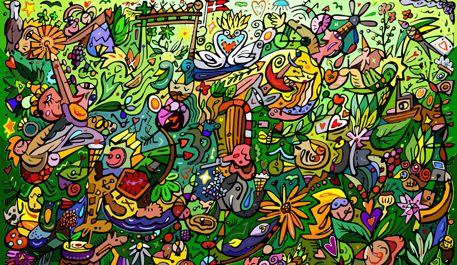 "Alting er nyt under solen".Jes NordbyEt Univers I AltingJeg tegner verden, -ved at reflektere over dens forskellige fænomener, tage forskellige elementer ud af deres vante sammenhæng, tegne dem ned i en ny, der resulterer i skitser, der kan kædes sammen i det uendelige, så alle mine billeder bliver små dele i en større sammenhæng, sådan forstået, at det er det samme billede jeg arbejder videre på, den samme helhed eller livsforståelse jeg arbejder på at udvide. Det har taget mig 45 års intenst arbejde, at bygge det system, den forståelse eller dette billedsprog op. Og jeg har gjort det ved, at fordybe mig i og arbejde ud fra forskellige udtryksmåder indenfor malerkunsten. Jeg har erfaret at jeg ud fra en fællesmenneskelig betragtning, må rumme dem alle i mit Selv. Derfor har jeg gennemarbejdet hver enkelt retning, -det naturalistiske maleri, det kaligrafiske, det naive, det abstrakte, det spontane, det koloristiske, det surrealistiske osv., så de er blevet struktureret og levendegjort i mit sind og følelsesliv. Ud fra dette arbejde, har jeg formet en helhed, ud fra de forskellige elementer, oplevelsesmuligheder og planer, lagt disse sammen til eet billede, sådan at mit indblik i den sanselige virkelighed, bliver mere flydende, mere fleksibel. Alt dette kan jeg bedst illustrere således. Først en pyramide, hvor alle fire sider er et spejl eller en isme. Jeg går på jorden og kigger ind i spejlet. På den måde kan jeg kun se den ene side af gangen. Jeg ser i det første hvad spejlet reflekterer, -sådan ser virkeligheden ud (måske naturalistisk). Hvis jeg så i tid bevæger mig til næste side og ser hvad dette spejl reflekterer, finder jeg, at sådan ser virkeligheden også ud, (måske abstrakt). Når jeg er nået hele vejen rundt, kan jeg se, at der er mange virkeligheder, her fire, som alle må være relativt sande. Herudfra kan jeg danne en sammenhængende relativ virkelighed. Det illustreres ved et keglespejl, så overgangene bliver flydende, min spadseretur omkring dette bliver en ubrudt oplevelse. Dog har jeg stadig tiden med som faktor, men fordi jeg nu har kendskab til de forskellige virkeligheder, kan jeg stille mig op på spidsen af keglespejlet. Her har jeg et "fast", et superpositioneret og absolut transcendent udgangspunkt, hvorfra jeg kan overskue hele keglen på een gang, hvorudfra al relativ virkelighed udgår og mødes, -et åbent punkt, hvor billedets centrum bliver alle og ingen steder, “tyngdekraften” ophæves og alting flyder/strømmer. Det er ud fra den metode jeg nu arbejder, -en proces hvor jeg kan udvide min bevidsthed, den verden, det billedsprog, den illusion jeg har bygget op, -koble det transcendente med det fysiske, lade ånden gennemtrænge formen og farven, lade det indre rum favne det ydre, så verden strømmer gennem mig, -at jeg til stadighed selv skaber den. Jes Nordby, multi-kunstnerAltingAt Elske JordenAt Elske Himlen At Elske Væren I Altings Vrimlen Jes Nordby, multi-kunstner Humor, Kærlighed & ErotikI Jes Nordbys billeder trives kærlighedentil akkompagnement af fuglefløjt og de sprøde toner fra en harmonika. Farverne er glade, de elskende er glade, dyrene er glade og vi, vi bliver glade, når vi ser på billederne. Jes Nordbys verden er en rar og sjov og forelsket verden, hvor blomsterne blomstrer og solen skinner og hvor kærligheden besejrer alt. Og læg nøje mærke til det: der skal en stor portion kunstnerisk kunnen for at opnå dette. Jes Nordby kan sit kram. Jeg kender ikke andre kunstnere, der kan få en til at smide alt, hvad man har i hænderne og give sin kone, mand eller kæreste et ordentligt smækkys. Men det kan Jes Nordby og tak for det! Tom Jørgensen, redaktør af Kunstavisen Det Myldrende liv"Jes Nordby's krible-krams-verden er sprælske ophobninger af både alvor og livsglæde og ikke mindst det sidste... Hans ekspressive, både naturalistiske og lidt naive arbejder har nemlig en egen munter sorgløshed. I de lysende, smukke helheder, meget personlige og rumlige universer, bindes alle detaljer fint sammen i velafstemte koloristiske harmonier. For midt i mylderet forstår han at få de enkelte arbejder til at hvile i sig selv, samtidig med de bevarer karakteren af noget sprudlende og levende og har rytmisk musikalitet." Alex Steen, kunstkritikerFactsFødt 1955 i Fovslet nær KoldingAutodidakt multi-kunstner Bor i Sønder Stenderup nær Kolding Solo udstillingerBirch Grafik, KøbenhavnGalerie Actuel, Skive Galerie Westing, Odense Galerie Birkdam, København Galleri Steen, Esbjerg Jacob Feldballe, Kolding Galerie Ægidius, Randers Galerie Torso, Odense Galerie Nordenvind, Sæby Galleri Hellebæk, Hellebæk Galerie Asbæk, Horsens Alpha Kunsthandel, Halmstad Elms Lesters Painting Rooms, London Galerie Æblegården, Søllerød Galerie Knud Grothe, Charlottenlund Galerie Knud Grothe, Charlottenlund Galerie Knud Grothe, Charlottenlund Galerie Art Soto, Ålborg Galerie Beckman, Bruxelles Galleri Elise Toft, Kolding Galleri Nota Bene, Kolding Gallerie Rasmus, Odense Galleri Klitgaard, Mariager Galleri Slugen, Esbjerg Galleri Wichtrup, Horsens Strand-Galleriet, Vejers Strand-Galleriet, København Creas Galleriet, Dronninglund Galleri Jes Nordby, Sønder Stenderup Galleri Tønder, Tønder Galleri Brænderigården, Horsens Galleri Tønder, Tønder Gruppe udstillingerI.D.C., New YorkArt London 90, London Line Art, Gent Elms Lesters Painting Rooms, London Kunst i Forum, København Galleri Klitgaard, Mariager Hanson Gallery, New Orleans Hanson Gallery, San Francisco New Court Gallery, København Galleri Capela, Juelsminde Galerie Knud Grothe, Charlottenlund Galleri Tønder, Tønder Galleri Rasmus, Skagen Strand-Galleriet, Vejers Legater og fondeProfessor Gottfred Eickhoff & Hustru Maleren Gerda Eickhoffs FondAlbani Fonden Thomas Minde Legatet Sandøfonden Vejle Amts kulturpulje Ole Kirks Fond Undervisningsministeriet DiverseBøger: Dansk KunstårbogBøger: Weilbachs Kunstleksikon Bøger: Art Expo, "Jes Nordby -