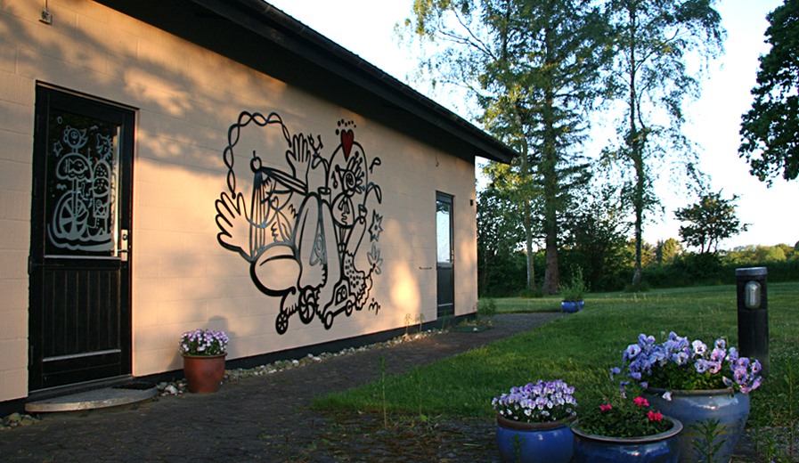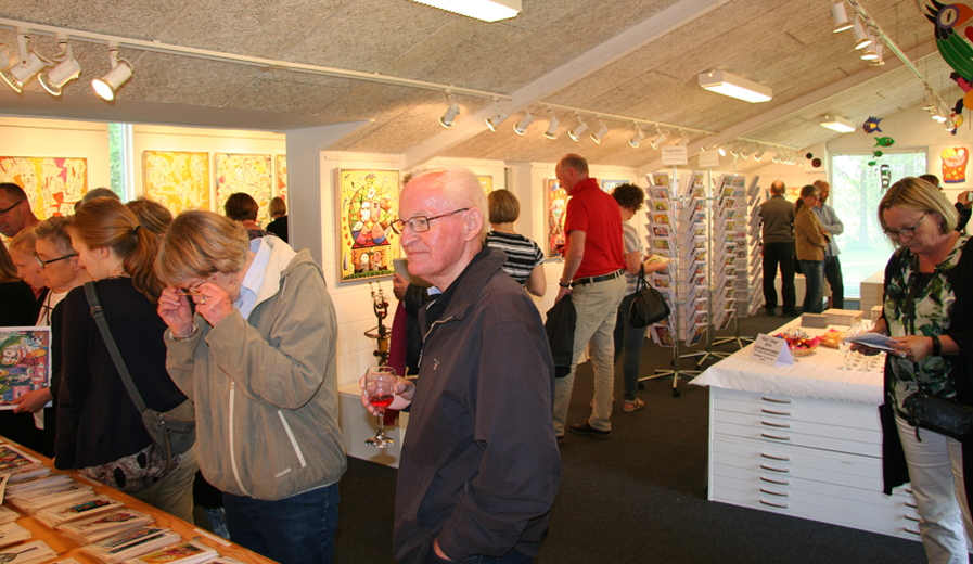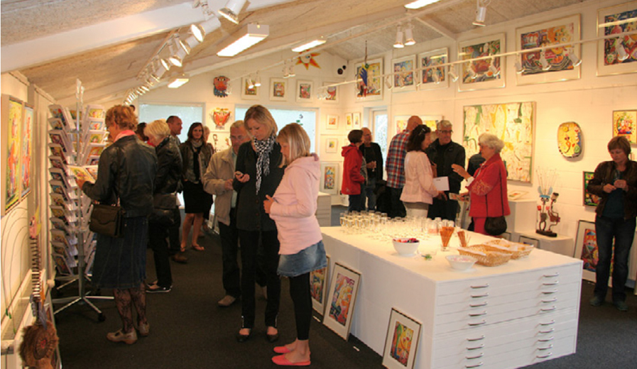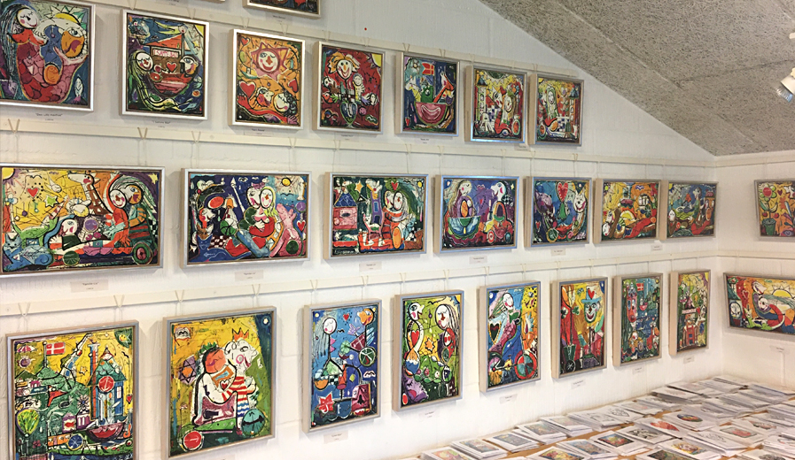 Vi vil gerne byde dig velkommen i vores 200 m2 store galleri, beliggende i Sønder Stenderup ca. 9 km syd/øst for Kolding. Her har du muligheden for at opleve Jes´ farverige, finurlige og livsglade billedunivers på nært hold. Alle arbejder er udført i eget værksted, der ligger i samme bygning som vores privatbolig og galleri.