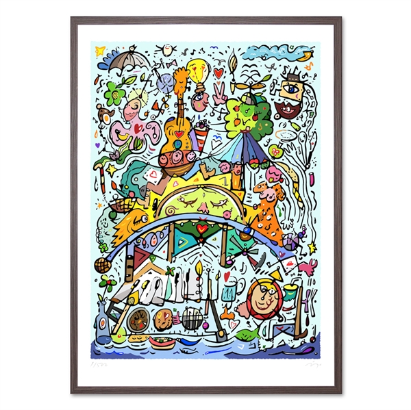 Den første spæde skitse til billedet tegnede Jes sidste år i Sønder Bjert under Blue Bridge Festivalen, og hele overskuddet fra salget går til at kunne støtte op om festivalens mange musikalske og menneskesamlende initiativer.