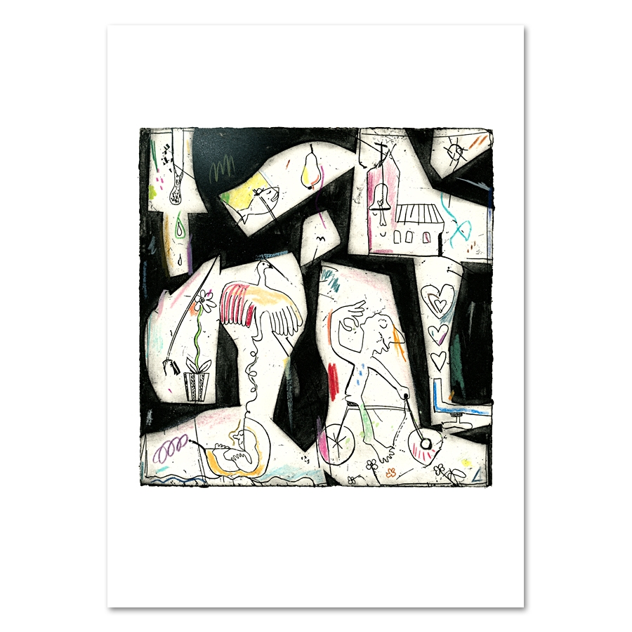 Dobbeltkort udført af Jes Nordby i eget værksted på 300 gram silkemat papir.