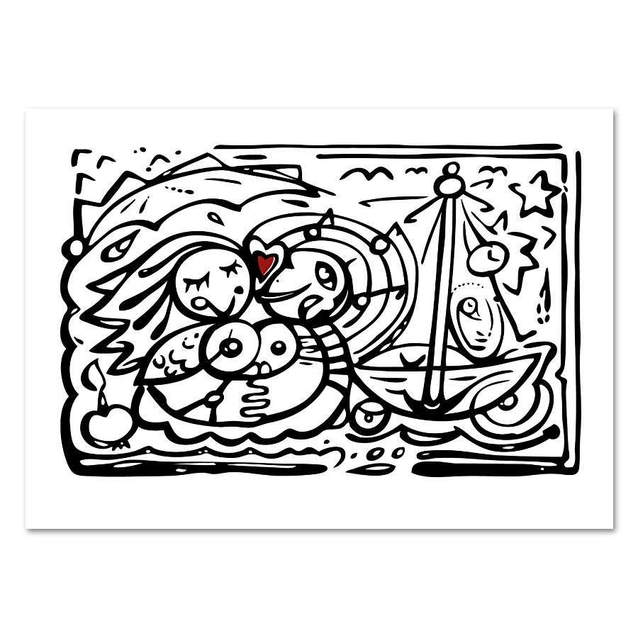 Dobbeltkort udført af Jes Nordby i eget værksted på 300 gram silkemat papir.